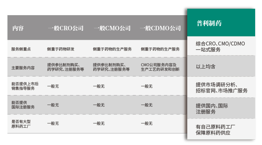 提供综合性闭环服务,支持上市后销售,具有双报优势,国内、国际均可注册,原料制剂一体化,研发及商业化产品不受原料药限制。剂型种类丰富,包括注射剂、缓控释制剂、口服制剂、儿童制剂、外用制剂。品种覆盖了消化道和代谢药物、造影剂、神经系统药物、全身用抗感染药物、肌肉-骨骼系统药物、心血管药物、呼吸系统药物、抗肿瘤药物、眼科药物、皮肤用药等十余个领域。